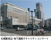■ 2 3日(日)は、午後4時から札幌駅前通地下歩行空間の北3条広場で、東日本大震災のためのチャリティライブが行われ、道行く札幌市民の多くの方がしばし足を止め、音楽や被災者の証しなどに耳を傾けて行きました。集められた募金84,139円は、日本赤十字社に寄付します。主に栄光! YFN2011のために祈ってくださり感謝します。